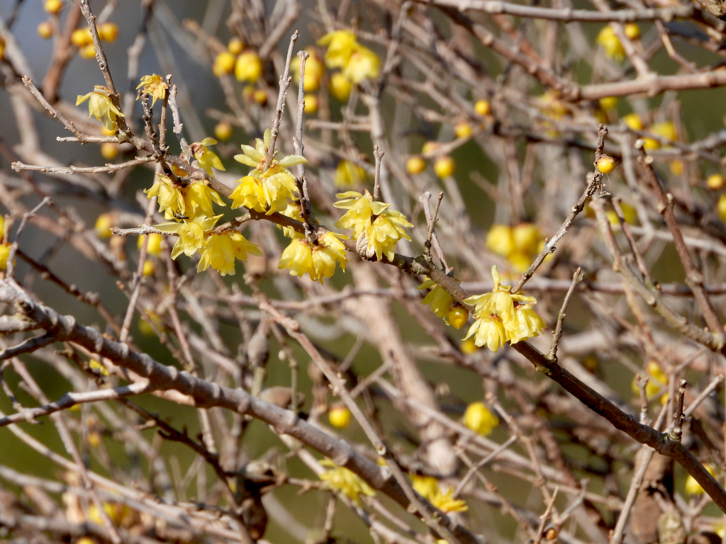 早春の花(ロウバイとスイセン)が咲き始めています。