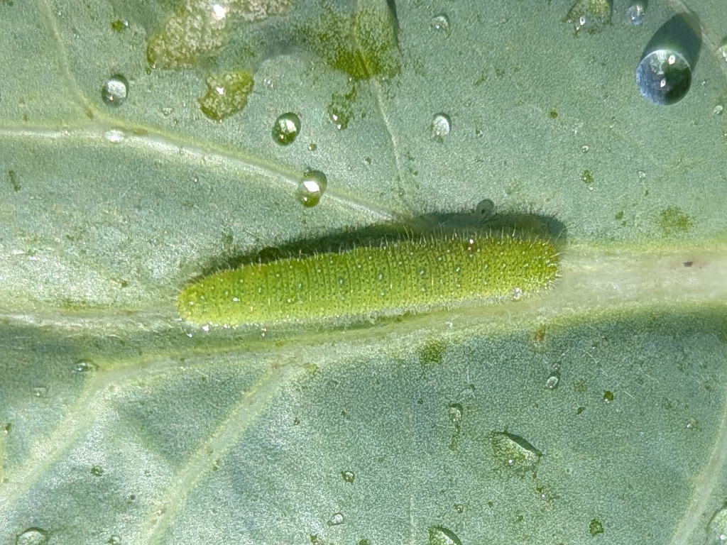 ネットを除いた時点でのブロッコリーの状況です。茎も1cm以上と順調に育っていました。ネットを取り除くと、モンシロチョウの食害も発生します。